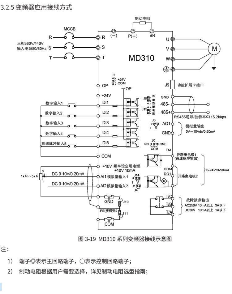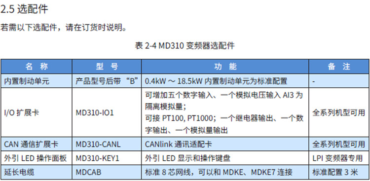 MD310 系列變頻器是一款通用緊縮型多功能變頻器,采用開環(huán)矢量和V/F 控制方式,以高性能的電流矢量控制技術(shù)可實(shí)現(xiàn)異步電機(jī)控制。MD310 標(biāo)配RS485 通訊接口,支持Modbus RTU 通訊,可擴(kuò)展I/O 擴(kuò)展卡、CAN 通信擴(kuò)展卡。內(nèi)置PID 可方便實(shí)現(xiàn)閉環(huán)過程控制系統(tǒng),最多可實(shí)現(xiàn)16 段速運(yùn)行。